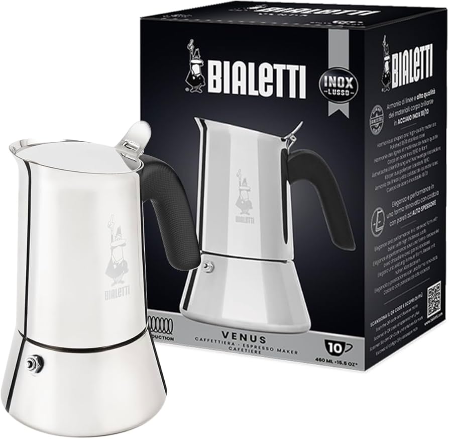 Készítsen ízletes, telt ízvilágú, olasz stílusú kávét egy egész társaság számára percek alatt a lenyűgöző, 10 adagos Bialetti Venus segítségével. Letisztult, áramvonalas formájának és impozáns méretének köszönhetően ez az elegáns kotyogós kávéfőző mintegy 460 ml gazdag, rendkívül aromás főzetet készít. Tökéletes választás nagyobb vendégseregek fogadásához, családi összejövetelekhez, vagy egy kifinomult kávépillanat megosztásához az összes barátjával.