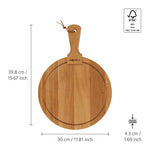 Ez a tartós európai tölgyfából készült, kompakt kerek deszka masszív megjelenést és hosszan tartó minőséget kínál. A masszív nyélnek és a bőr akasztózsinórnak köszönhetően nemcsak funkcionális, hanem a konyhád dekoratív ékessége is lehet.