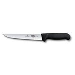 Victorinox Fibrox hámozókés egyenes élű, 18 cm hosszú pengével és fekete szintetikus markolattal.
