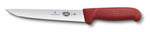 Victorinox Fibrox hámozókés egyenes élű, 18 cm hosszú pengével és piros műanyag nyéllel.