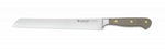 Wüsthof Classic Colour kenyérvágó kés 23 cm-es dupla fogazású pengével és bársonyos osztrigaszínű markolattal.