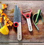 Le Petit Chef peeler is equipped with an educational ring which helps to position well fingers and to peel easily by pulling.
