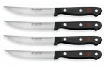 Wüsthof 9729 – Gourmet 4-piece Steak Knife Set with straight edge 12 cm blade and black plastic handle.