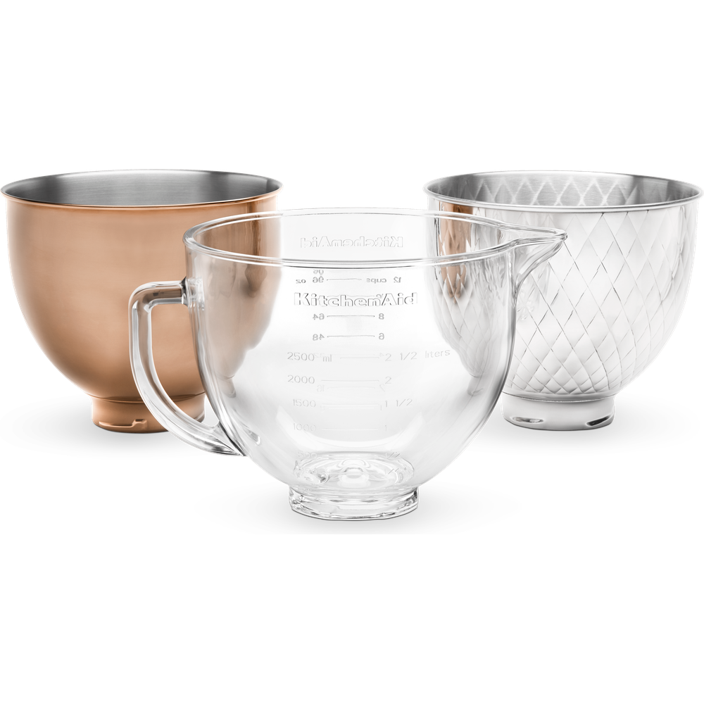 This spotless glass bowl is designed to fit all our 4.3 and 4.8 L tilt-head stand mixers. With a capacity of 4.7 L, it’s perfect for cooking up small to large recipes in your next baking session. You’re all ready to get creative with your mixer.