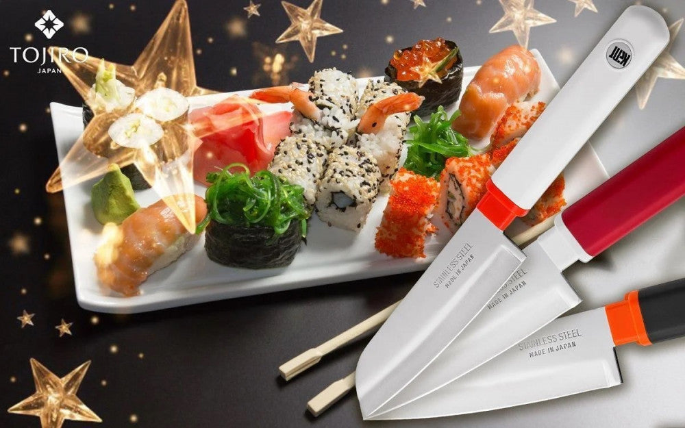 Kent Fruit Knife with 10 cm long blade, black handle and blade guard.