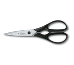 Victorinox multi-function kitchen scissors stainless steel, black plastic handle.