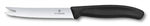 Victorinox Cheese and Sausage Knife with fork tip, serrated edge and black handle.