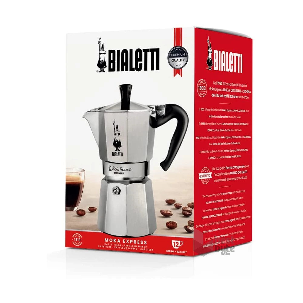 A Moka Express már több mint nyolcvan éve az olasz kávékultúra meghatározó szimbóluma. Világhírű nyolcszögletű kialakítása azonnal felismerhető és univerzálisan kedvelt. A finom modern finomításokkal – mint például a kényelmesebb, ergonomikus fogantyú és a letisztultabb vonalak – ez a 12 adagos modell gyönyörűen ötvözi a történelmi hagyományt a mindennapi kényelemmel. A világszerte eladott több mint 200 millió darabbal ez a készülék vitathatatlanul a kotyogós kávéfőzők legnagyobb klasszikusa.