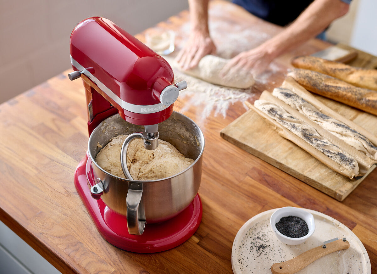 Ne fogd vissza magad a KitchenAid 6,6 literes mixerrel, a világ első számú mixermárkájától. Egész nap alkothatsz ezzel a nagy kapacitású, nagy teljesítményű álló mixerrel. Dagaszthatsz pizzatésztát, keverhetsz süteménytésztát, habcsókot készíthetsz, sőt, akár sertéshúst is téphetsz, mindezt könnyedén, akár 1,5-szer nagyobb teljesítménnyel a tálban, mint a dönthető fejű álló mixerünk*. *az 5KSM150 modellhez képest, a tálban mért csúcsteljesítmény alapján.