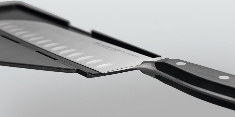 A mágneses Wüsthof pengévédő biztonságos tárolást biztosít a késeknek, megóvva őket a karcolásoktól és sérülésektől. Ez a zsanéros pengévédő könnyen nyitható és mágneses, így biztos záródást tesz lehetővé.
