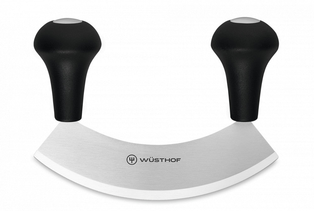 Professzionális ívelt kés, szeletelő kés, amely megkönnyíti és hatékonyabbá teszi a petrezselyem és fűszernövények aprítását. Kiválóan kiegyensúlyozott és ergonómiailag tesztelt. Ajánljuk gasztronómia különböző területein dolgozóknak, séfeknek, cukrászoknak, valamint kiváló eszköz otthoni használatra is. Mosogatógépben mosható.